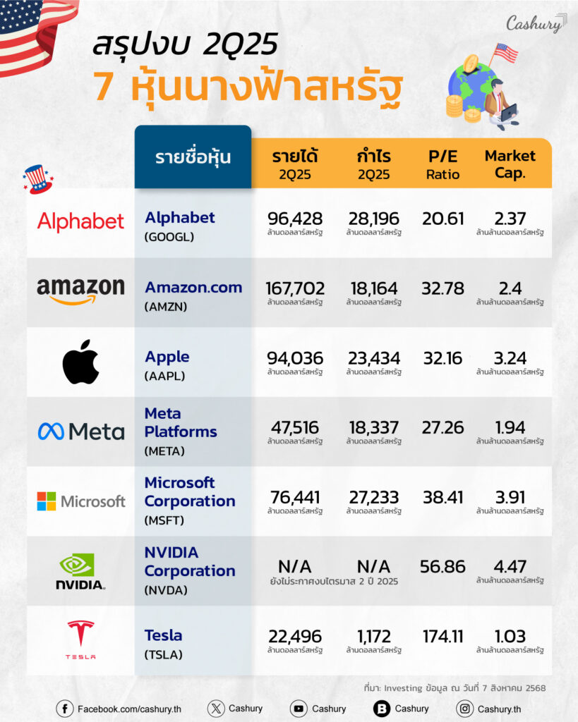 - เป็นตัวขับเคลื่อนดัชนี: หุ้น 7 ตัวนี้มีน้ำหนักรวมกันเกือบ 30% ของดัชนี S&P 500 และมากกว่า 50% ของ Nasdaq หมายความว่าถ้าหุ้นกลุ่มนี้ขึ้น ตลาดหุ้นสหรัฐฯ ภาพรวมมักจะขึ้นตาม